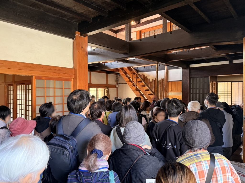 都内最大級の古民家である「内藤家住宅(東京都指定有形文化財)」の初公開となる一般見学会が行われました。東京都府中市にある内藤家住宅は、江戸時代に名主を務め、醤油醸造業も営んだ内藤清兵衛家と地域の歴史を今に伝える貴重な建物です。3月21日に実施した一般見学会には、私たちもサポートとして現地に駆けつけ、建物の歴史や見どころを紹介いたしました。当日は天気にも恵まれ、想定を大幅に上回る1,000人近い方々にご来場いただき、盛況のうちに見学会を終えることができました。